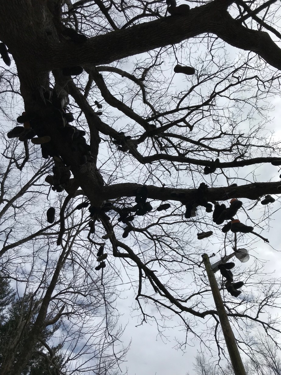 The tree at Mountain Crossings, Neel Gap is strung with castoff boots of the 25% who quit the trail within the first few days. Even though I was ready for a break, there was no way I was quitting this early into the hike.